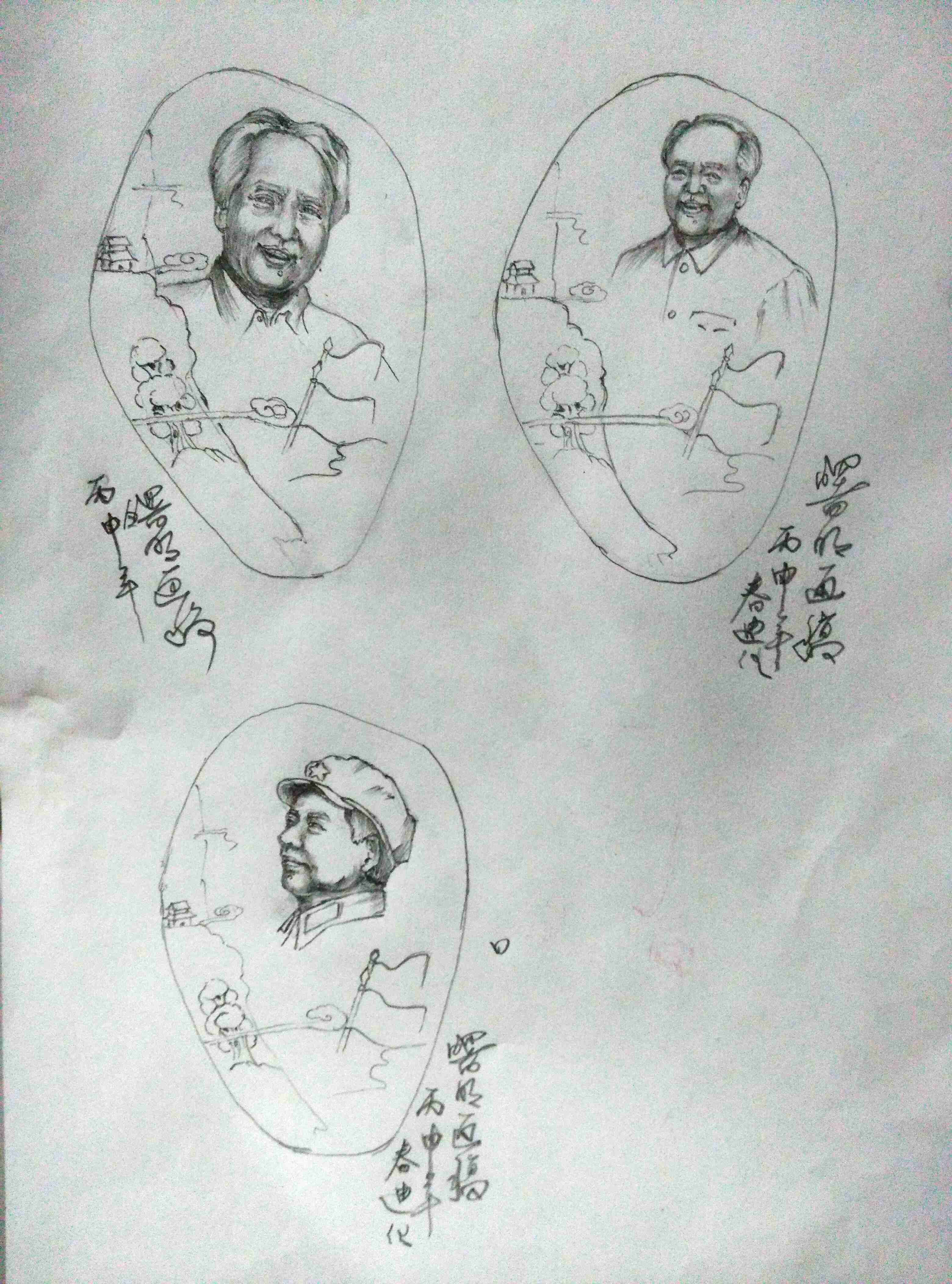 这又是一次主席像为定制而创作,三幅设计稿,选了四十年代后期延安时的主席,神采熠熠,信心百倍,充满希望的微笑。我想,主席的精神在那个时代尤其是建立新中国时,象征着广大人民的利益,是善正的力量,一定会释放出这块玉的能量,宣扬善正的力量,为造福我们人类社会和国家,而显现艺术的魅力、价值和意义。