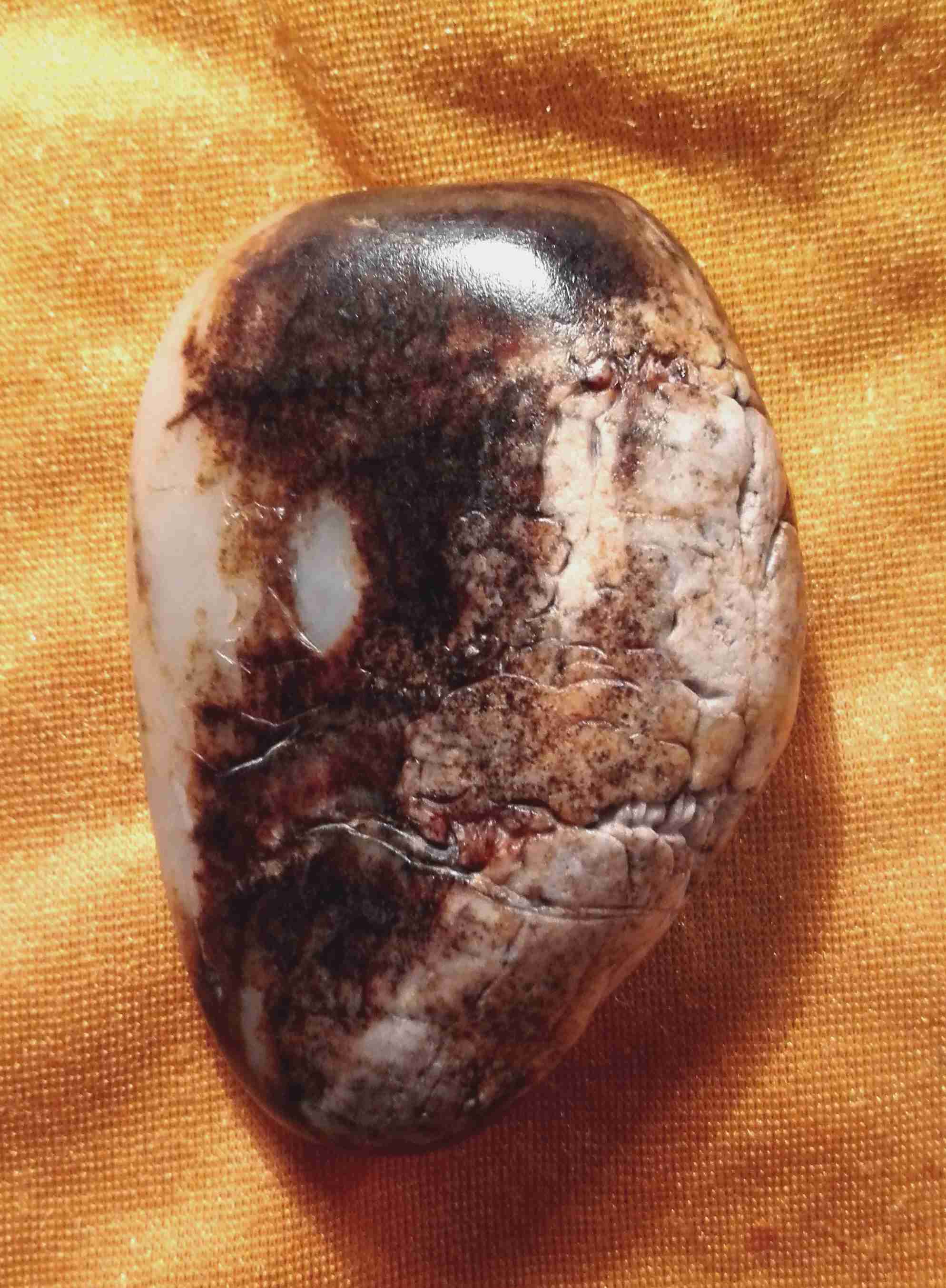 为什么我总以人为标准审美专制而凌驾玉的自然原生态美之上,认为羊脂白最美,青玉色最凡,杂色玉最丑,散金皮枣红皮最好,白灰浆皮最差?忘却了,自然之美美的世界如此广大,生命无处不在。当我们真心爱玉的时侯,每一块玉都有独具个性的美,视它们生命的时候,我们又如何破坏它的美而擅自开刀呢?当我们忽然感悟它是宇宙天地的善正能量和能源的时侯,我们又如何不去珍爱、保护和传递它其中的精神呢?