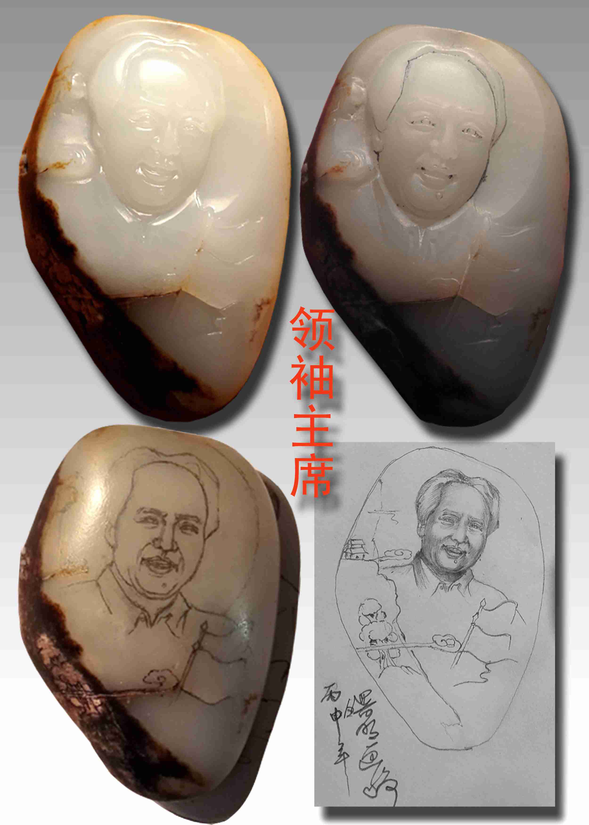 《主席》侧面玉石原料首次画样